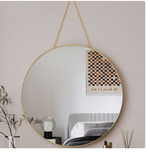 Transforma cualquier rincón con el toque sofisticado de nuestro espejo colgante dorado. 🌟 Perfecto para tu habitación, sala o recibidor, este espejo no solo refleja tu imagen, sino también tu estilo y buen gusto.